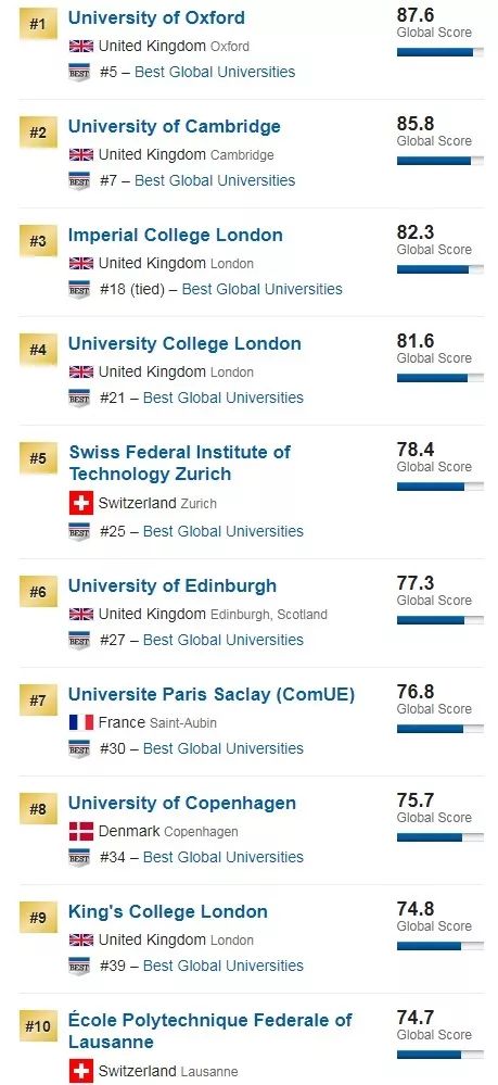 原标题:最新2019 US News全球大学排名出炉啦,加州大学挺进Top5!