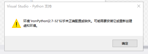 编译运行项目,系统提示环境错误。打开资源管理器,在IRON python上发现一个告警。