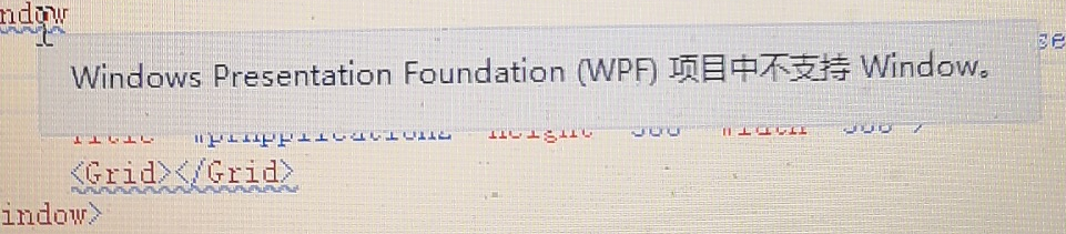 新建项目完成后,进入页面编辑器。提示无效标记,WPF项目不支持XXX标签。