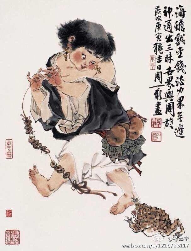 前文已提及,陈老莲的最大意义是冲破常理,将正统的道释儒价值与民间文学中神话、圣贤英雄人物、爱情故事等结合,使得他的人物画更有乡土趣味。几乎扬州八怪、海派画家以及民国、当代画家都朝着这个美学思想发展。任伯年、吴昌硕、齐白石、周一新无疑例外。值得肯定,周一新是有贡献的。一,他将陈老莲、任熊等明清画家戏玩的消遣插画人物,从白描小尺幅,发展到了水墨写意的巨制地步。二,将前人插画从民间私下消遣带进了殿堂,增强了人物画的趣味性。