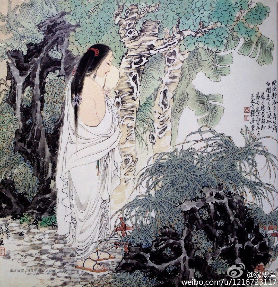 现代女性画做到脱俗很难。按中国本土标准,今不入画。按西方画史标准,中国画家差之千里。传统画界,张大千是首个画摩登女郎的画家。他用中国笔墨、中国美学标准所作的屏风美女,给人一种仙佛转世的感觉。这归功于他折中了中国仕女画与敦煌壁画。