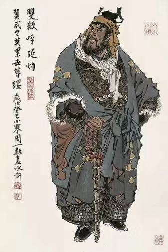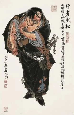 当代画关公、水浒人物的很少有人能走出插画,或者宣传画蹊径。周一新则不然,他从前人法中超脱,给二者赋予了文武兼备、粗中有细的形象。