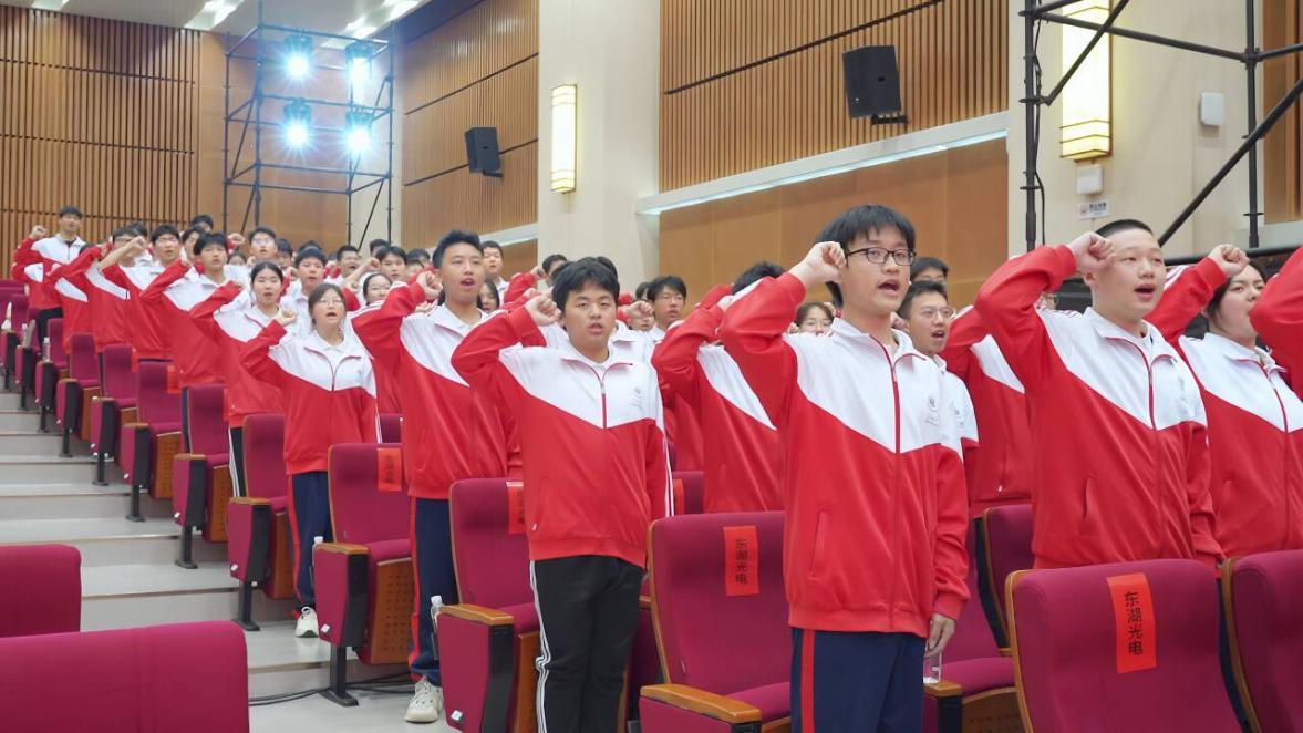 4月28日下午,武汉东湖光电学校优秀团员及入团积极分子参加了东湖高新区纪念五四运动106周年暨“青春出列 向光而行”示范主题团日活动。来自全区各行业、领域的优秀团青代表齐聚一堂,共话青春担当。武汉市及东湖高新区相关领导出席活动,勉励青年坚定理想信念,勇担时代使命。