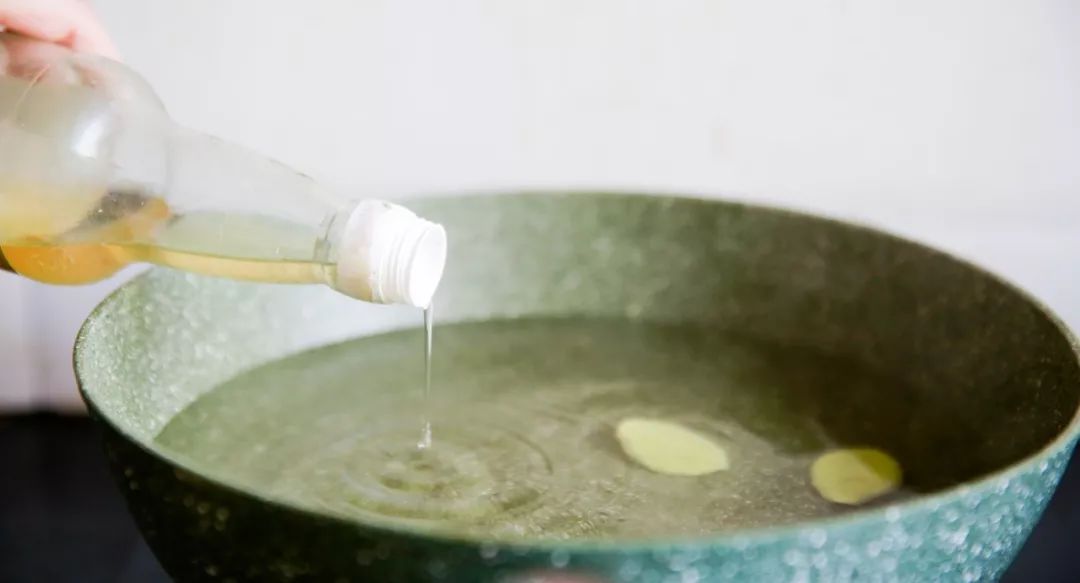▼ 3. 焯煮虾肉:锅内加入适量清水,加入姜片和1瓷勺料酒。