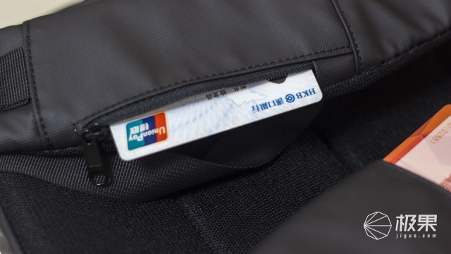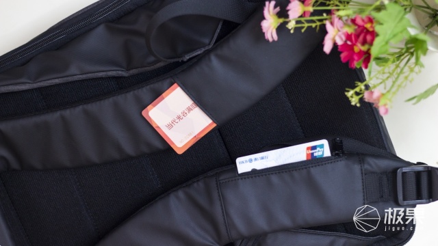 卡片是我们日常使用比较频繁的了,比如小区门卡、公交卡、医保卡,Click背包在左右背带上都设计了可放入卡片的设计,左边的为开放式口袋,方便放频繁使用的,右边的则为拉链式口袋,适合放偶然需要使用的,比如身份证、火车票。▼
