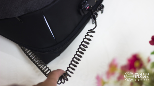 高强度防爆伸缩钢缆则是防盗二重奏,结合密码锁,我们在找到可借用的身边物体,比如高铁上的置物板、火车卧铺床上的栏杆等等类似固定物体,将伸缩钢缆缠绕物体然后固定在密码锁上之后,就可以安稳入睡,再也不需要担心一觉醒来发现背包已被人顺走。