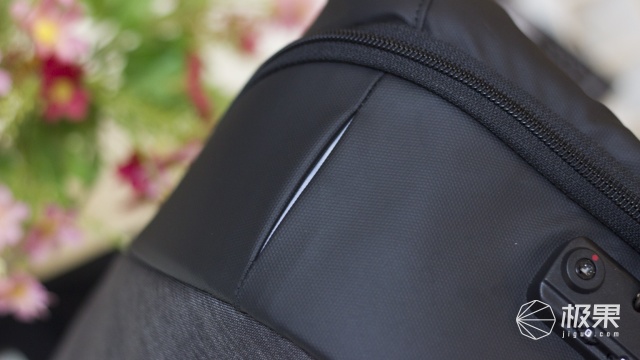 在背包外部,同样设计了隐藏式的口袋,可以放一些文件类的物品,依然采用的是隐藏式的设计,如果不是放了笔记本在这里,背面是浑然一体的感觉。▼
