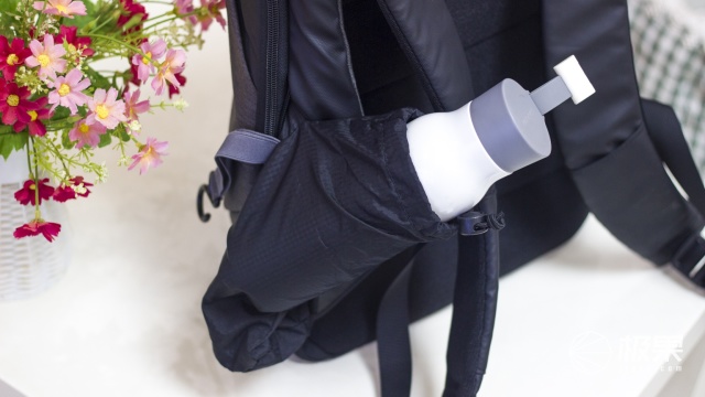 雨伞或者水杯是我们常用的物件,这款Click背包设计了隐藏式的束口袋,平时不用时,袋子隐藏在背包里面,需要用的时候,把束口袋掏出来,放入物品,术口后再用设计的固定带固定即可,而且袋子本身是防水设计,即使放了湿的雨伞也不要紧。▼