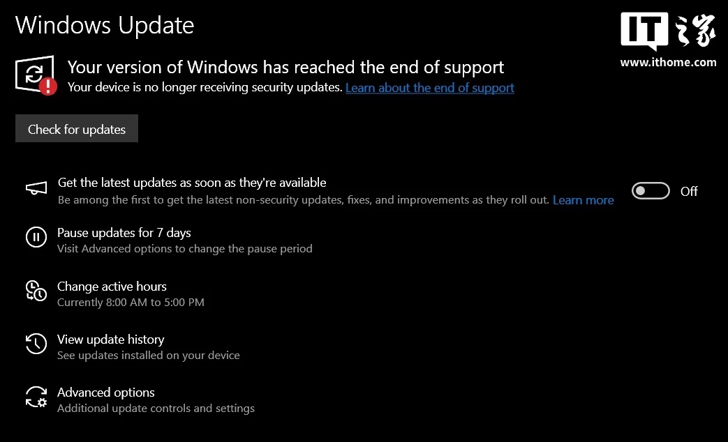 微软在博文中明确表示,只要用户的设备持有有效的 ESU 扩展或仍是受支持的 LTSC 版本,就能正常接收到官方的安全更新,设置应用中的“终止支持”文字只是显示错误,用户可以忽略。