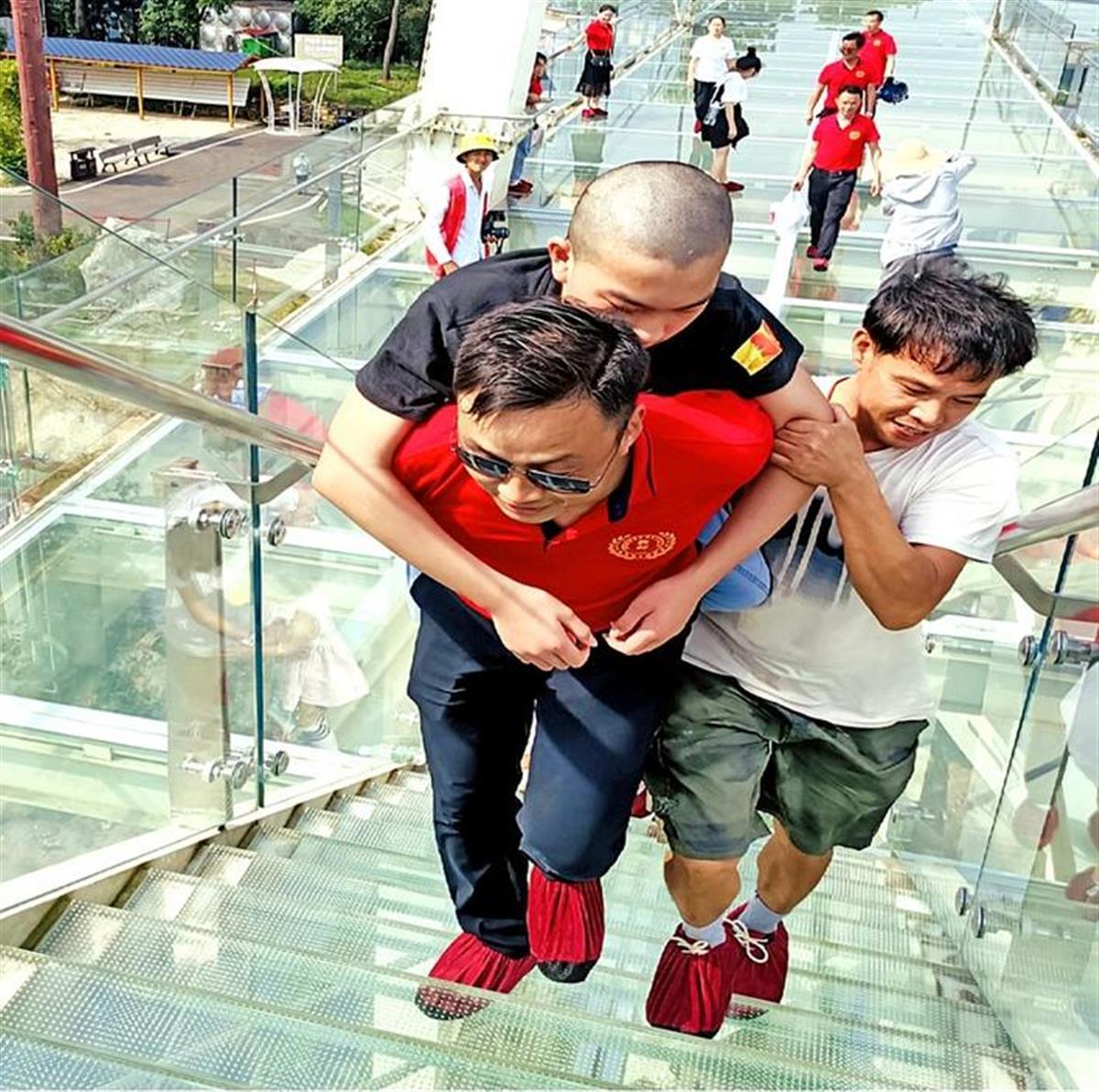 Wu Lushan, a teacher, said: “The mountain is very steep and Xiaojie is very heavy, so piggy-backing him was challenging. But knowing that we get to support him on his journey is incredibly motivating for all of us.” On that day, once the teachers made it to the summit with Xiaojie, they waved to the world ready for what the future held.