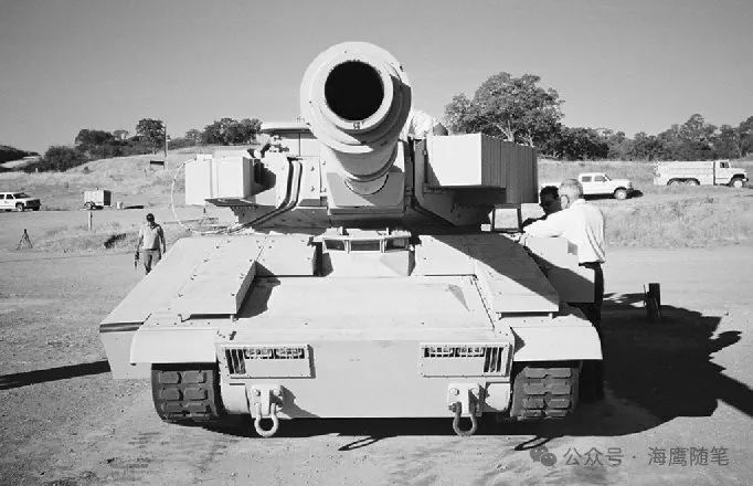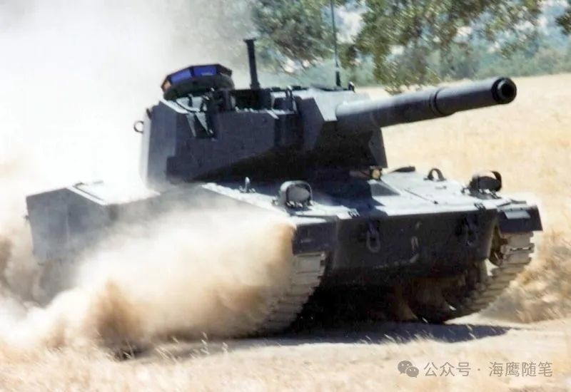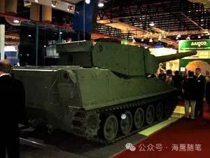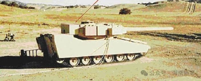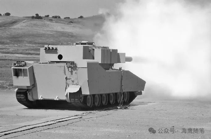 上图可见安装了120毫米电热化学炮以及相关组件的闪电,注意新型履带、不同的首下挂点、前置传动、步兵舱尾门等特征。