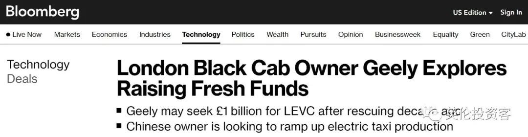 知情人士透露称,吉利可能会向私人投资者集资约10亿英镑,帮助旗下伦敦电动汽车公司(LEVC)加强电动出租车的生产,并促进LEVC的增长。