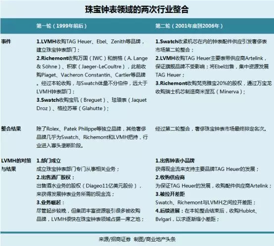 此后,珠宝钟表领域发生过两次行业整合,第一次整合促使行业由自由竞争阶段走向寡头垄断阶段;第二次行业整合之后,行业中主要参与者基本排定名次。