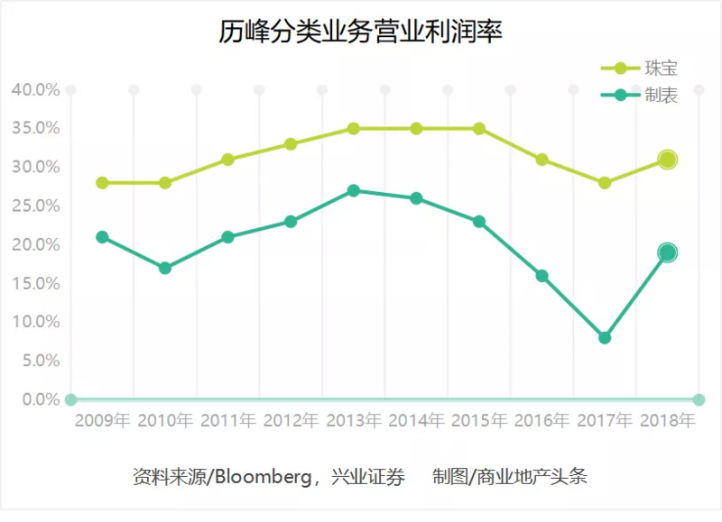 从盈利表现来看,特别是净利率方面,主营腕表和珠宝业务的Richemont要更胜一筹。