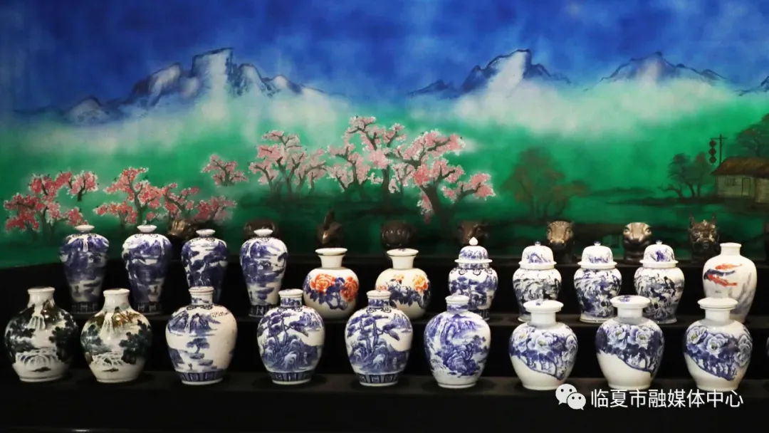 马家窑陶罐与 古河州酒 展柜相邻陈列