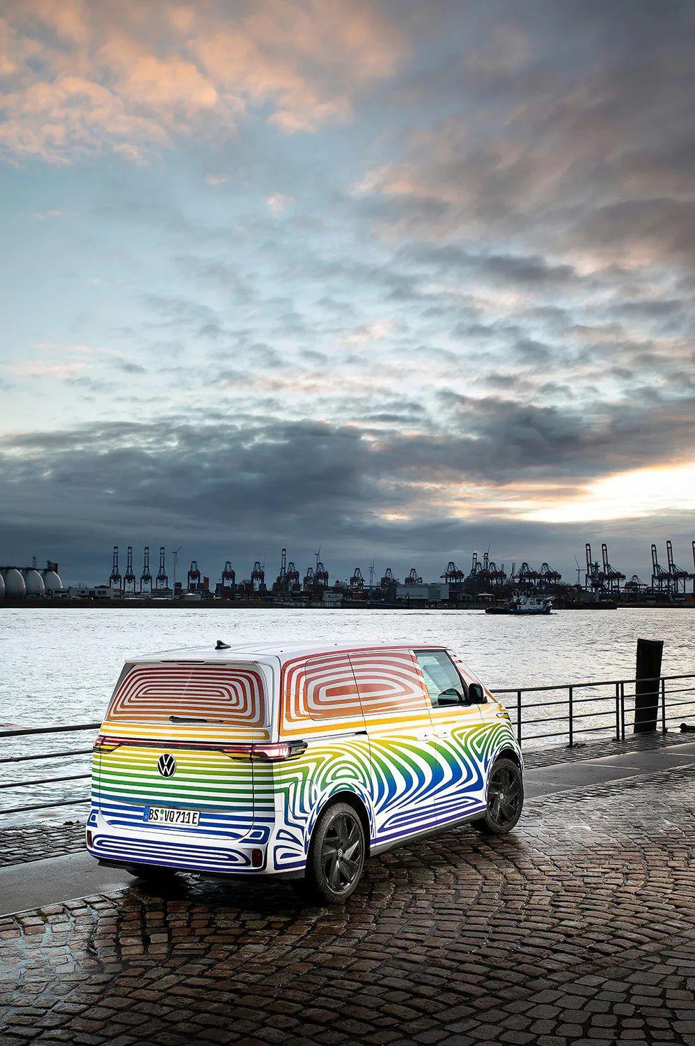 说到话题,ID.Buzz 有什么焦点呢?其实打从它的概念车横空出世那天,大众经典车型 T1 的设计元素就与 ID.Buzz 一同被热议,它有经典的上下双色车身,富有辨识度的 V 型前脸,以及和初代 T1 一样的后置动力单元后轮驱动 …… 差别在于 T1 是后置发动机,ID.Buzz 是后置电机。