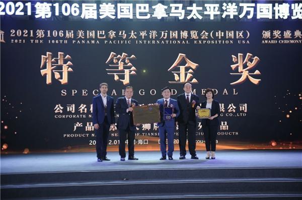 2021年12月1日下午,第106届美国巴拿马太平洋万国博览会(中国区)颁奖盛典在海南省海口市鲁能希尔顿酒店隆重举办。美国巴拿马太平洋万国博览会奖项被新闻界称为世界三大奖项之一(人文科技界诺贝尔奖、影视文艺界奥斯卡奖、工商界巴拿马奖)。一百多年以来盛誉不衰,得到了各国各界和各阶层的普遍认可。当年茅台酒就是因为获得了巴拿马奖而享誉全世界。