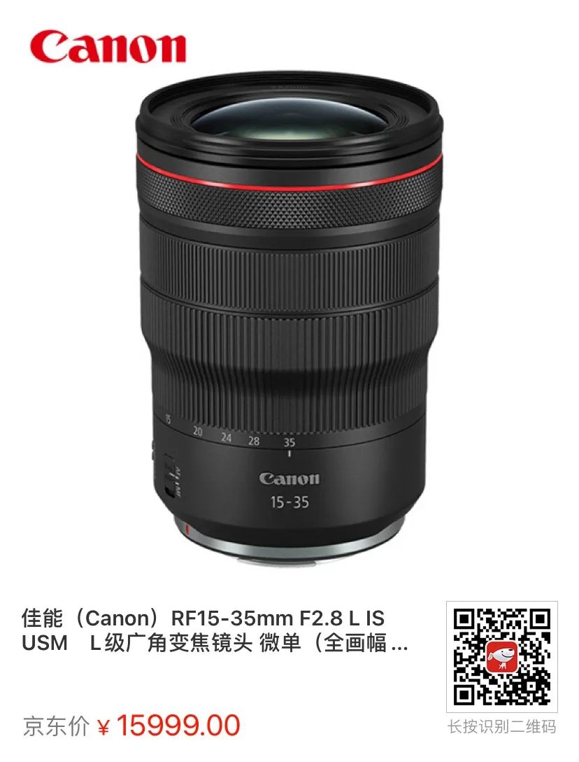 在佳能RF15-35mm F2.8L IS USM发布以前,无论是首批亮相的RF卡口镜头还是后期发布的新品中,其最广焦段都控制在24mm,比如RF24-105mm F4 L IS USM、RF28-70mm f/2 L USM、RF24-240mm f/4-6.3 IS USM等,而佳能RF15-35mm F2.8L IS USM则一下让佳能EOS R系统的用户有了一个全新超广镜头的选择,目前这支镜头在京东双11的价格为14999元。
