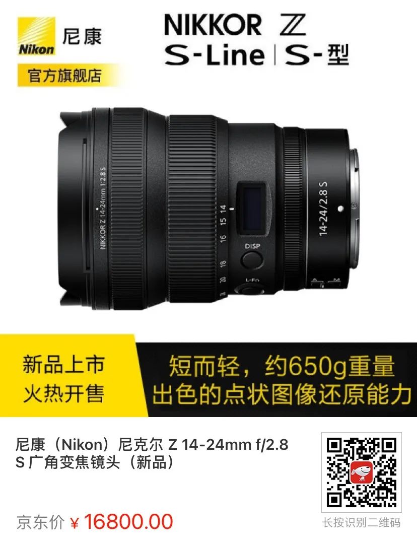 拥有f/2.8恒定最大光圈,能为整个焦段的画面提供惊艳的渲染效果,轻便易携的广角变焦镜头尼克尔 Z 14-24mm f/2.8 S目前在京东双11的售价为16800元。