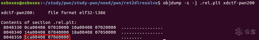 可以通过上图命令获得.rel.plt的地址,rel.plt节保存着函数对应.got.plt地址和r_info信息