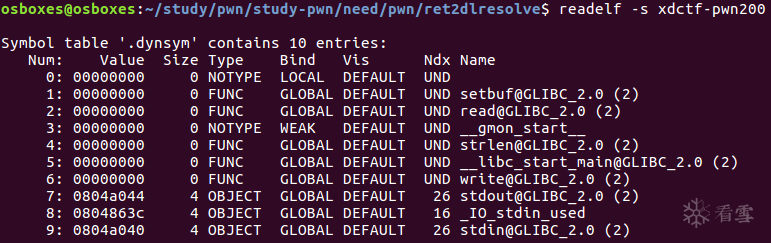 0x28:p32(st_name) p32(0x0) p32(0x0) p32(0x12) //存放.dynsym信息 以0x10单位存储,st_name=0x0804a040+0x38-0x08048278=0x1e00