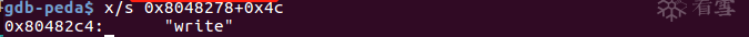最终要找到write函数的符号,要先在.dynsym中找到偏移,.dynstr加上0x4c的偏移量,就是字符串write