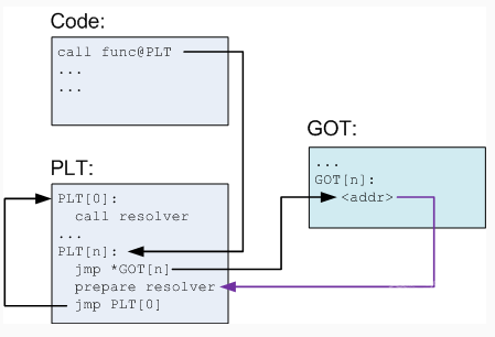 GOT[2]:存放了指向动态链接器_dl_runtime_resolve()函数的地址