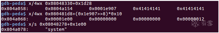 0x1c:p32(r_info) // 0x0804a040+0x28-0x080481d8 = 0x1e90 r_info=(((0x1f90)/0x10)<<8)|7=0x1f907 用于查找函数的符号、