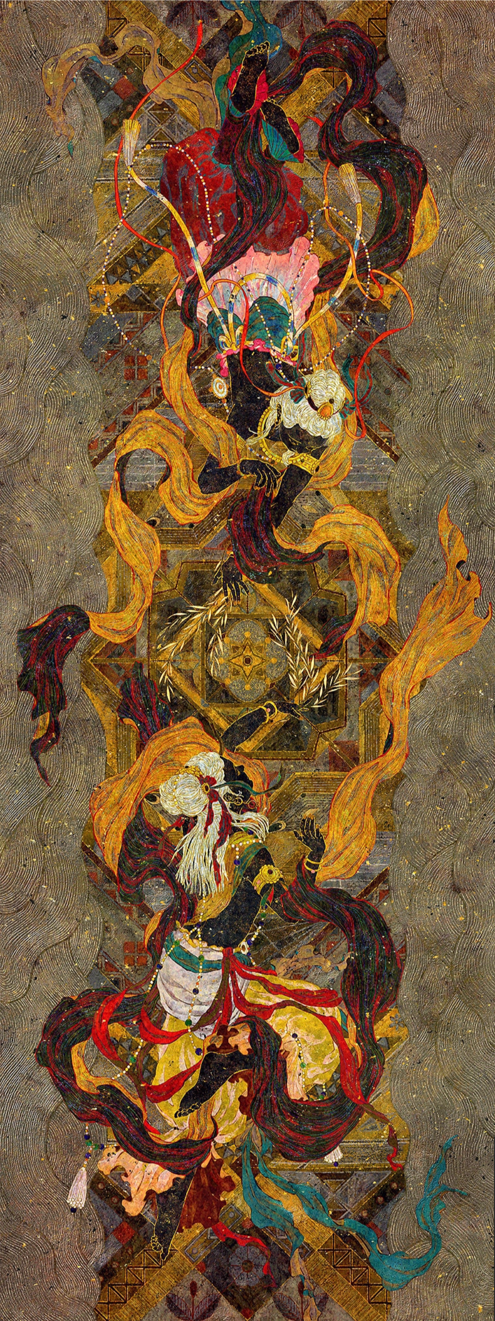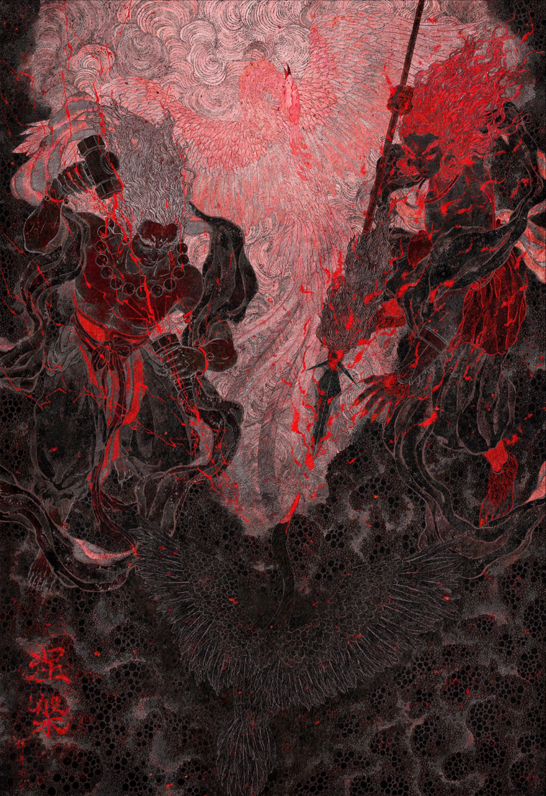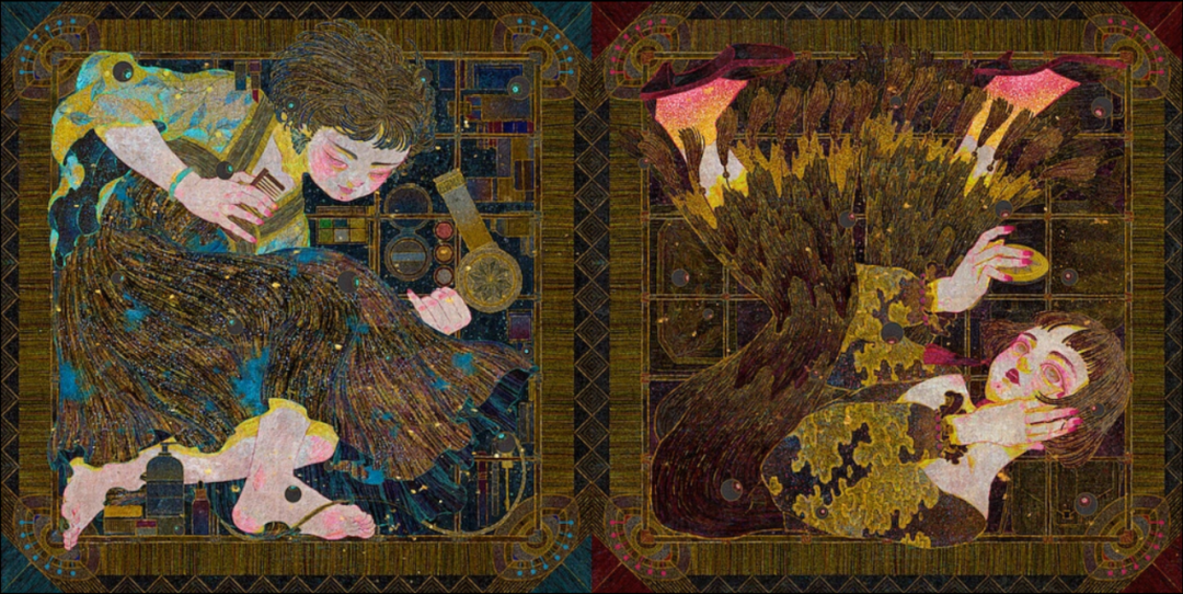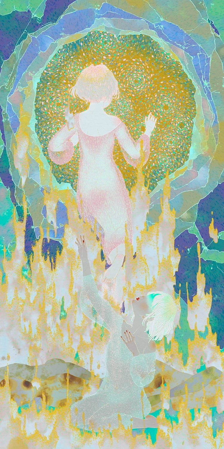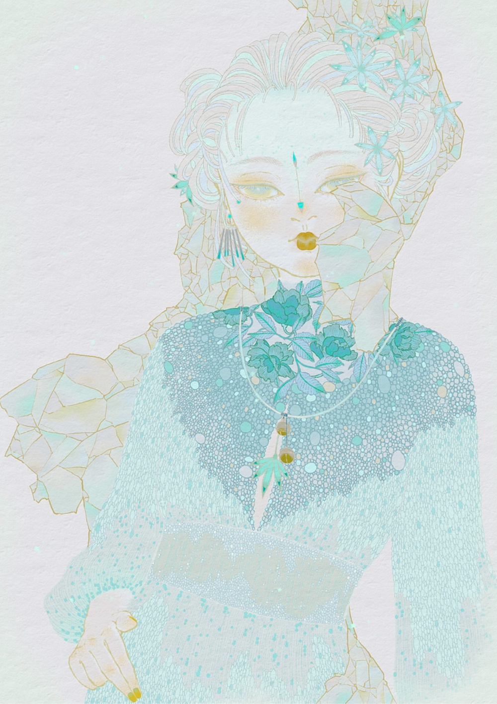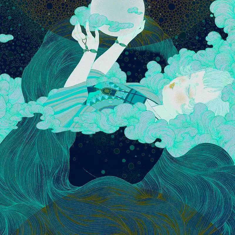 她的画全部是由板绘绘制而成,个人风格经长久的探索脱颖而出,神秘而震撼,所以请屏幕前的你将她的画点开放大、放大、再放大!会有不一样的惊喜的~