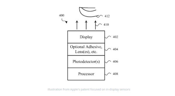 专利显示,这项专利技术可用于收集生物识别信息,如“指纹、掌纹、3D面部扫描或视网膜扫描”,这些数据可用于识别或认证用户。通过将这些传感器移至显示屏下方,苹果有望在未来的iPhone上将“刘海”取消掉。同时这项技术还将缩小iPhone和iPad的边框尺寸。