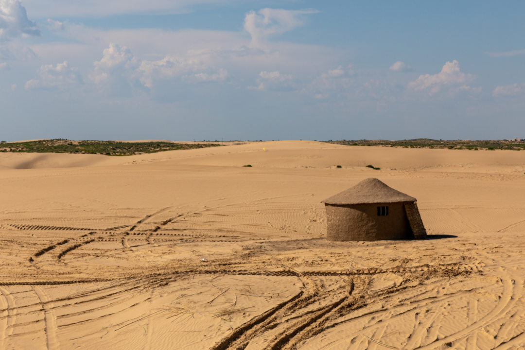 不远处,宝古图沙漠就静静地卧在老哈河的南岸,“宝古图”在蒙古语中意为“有鹿的地方”……