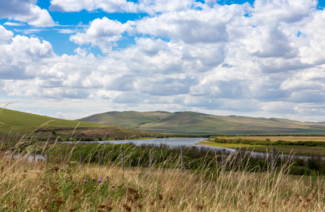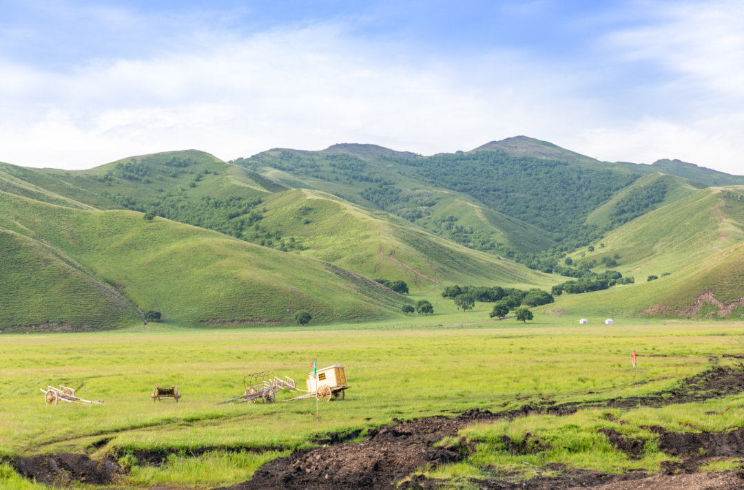 “在骏马奔驰的地方,似翡翠般的牧场。在鲜花盛开的地方,漫游着肥壮的牛羊。啊,我的家乡珠日河哟,你像宝石一样明亮,在我心中闪闪发光……。”车内回荡起悠扬的歌声,我们的车在304国道上向着西北方向一路狂奔。