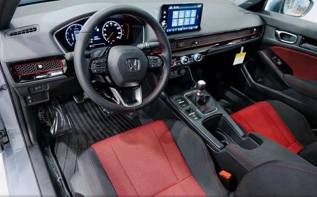 内装方面,是性能车经典的红黑搭配,视觉效果相当战斗,专属的运动座椅上印有Si 标志,就连档把头和防尘套都有红线装饰,先不说外观运动化到不到位,这个运动化内饰实在太赞了。