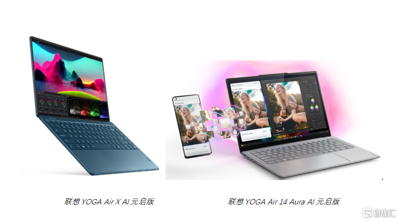 • YOGA Air X AI元启版:作为全球首款屏下摄像头笔记本电脑,搭配 4K PURESIGHT Pro OLED 显示器,高达 98%的屏占比带来极致视觉享受,为创意工作者打破边界束缚,提供无缝衔接的创作空间。这款由英特尔酷睿 Ultra 处理器强力驱动的AI PC,不仅轻薄便携易于携带,更具备长达 17 小时的强劲续航能力。