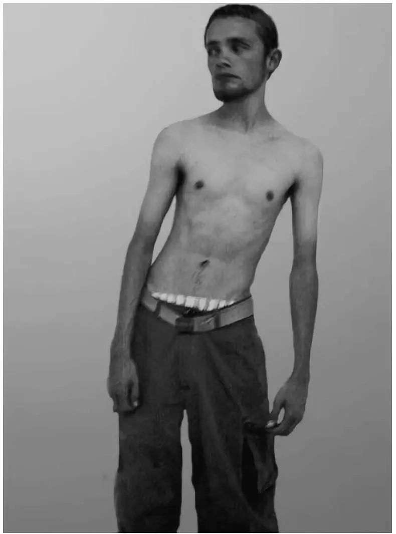 患者俯卧于治疗床。双上臂和胸椎平行,双手置于骨盆两侧。头部面向一侧。该体位是腰椎前凸时的自然位(图5)。当从俯卧位到站立位时,向后错位的患者需格外小心。因为一旦站起来,在卧位时复原的前凸仍要得到维持,这非常重要。