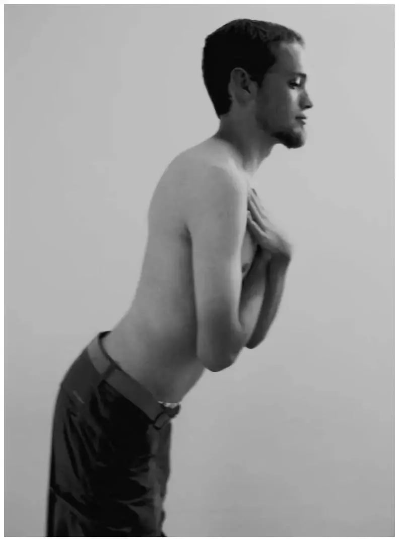 该练习叫做“镜像练习”,当患者出现脊柱“锁死(Blocked)”位(图13),那么患者势必弯向一侧。练习时,患者可以将上半身侧靠墙壁,双脚与墙等距,然后骨盆向墙壁移动,然后回至初始位(图14)。该动作需重复8-10次9。