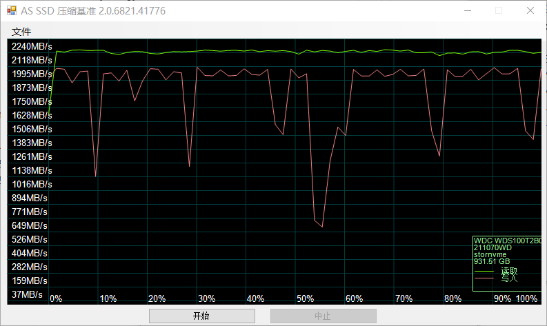 AS SSD Benchmark的压缩率数据测试中,WD Blue SN550的读取速度也比较平滑,写入有些波动,不过这也比较正常。