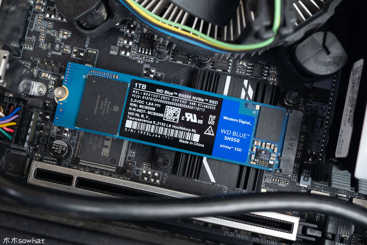 大家好,我是木木sowhat。大家都知道平时使用PS或者PR这类软件对硬盘速度要求比较高,工作室接下来要向视频方向发展,自然需要对原有的配置升级,而升级为高速的NVME固态硬盘则是首当其冲的,高速硬盘可以显著缩短图片和视频的加载时间,从而提高生产力。正好西数新推出了SN550这款M.2 NVMe SSD,楼主此前购入过WD Blue SN500,对其性能、稳定性和性价比都比较满意,此次遂京东购入WD Blue SN550的1TB版本。