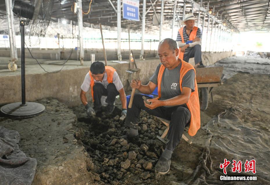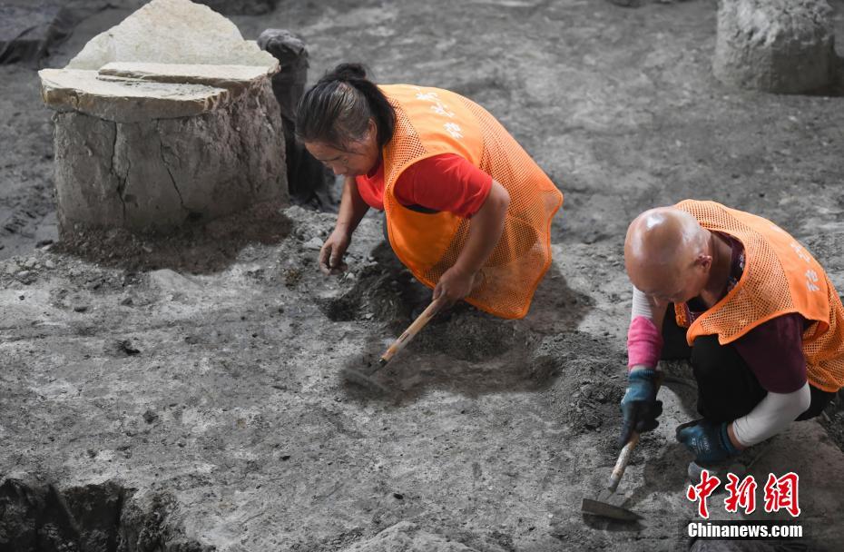7月23日,工作人员在绍兴稽中遗址进行发掘工作。近日,浙江绍兴稽中遗址考古工作取得阶段性重要成果。该遗址已清理大型建筑基址、水井、灰坑等重要遗迹40余处,是首次在绍兴古城内确认存在战国时期越国的大型建筑基址,相关遗存碳十四测年距今约2500年,实证了文献记载的勾践建都历史,是越国都城考古的重大发现。中新社记者 王刚 摄