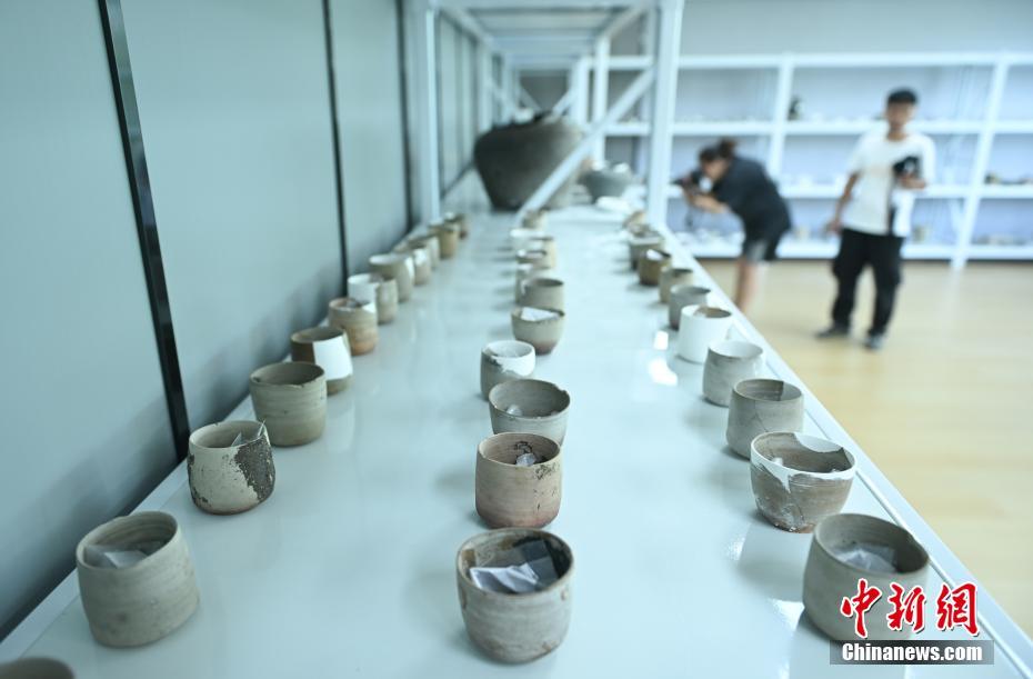 7月23日,绍兴稽中遗址出土的越国基址原始瓷碗在展示中。近日,浙江绍兴稽中遗址考古工作取得阶段性重要成果。该遗址已清理大型建筑基址、水井、灰坑等重要遗迹40余处,是首次在绍兴古城内确认存在战国时期越国的大型建筑基址,相关遗存碳十四测年距今约2500年,实证了文献记载的勾践建都历史,是越国都城考古的重大发现。中新社记者 王刚 摄