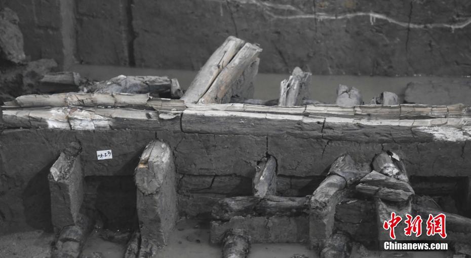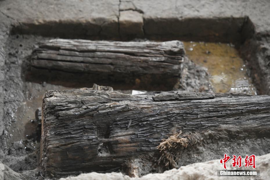 7月23日,绍兴稽中遗址中出土的越国木构文物。近日,浙江绍兴稽中遗址考古工作取得阶段性重要成果。该遗址已清理大型建筑基址、水井、灰坑等重要遗迹40余处,是首次在绍兴古城内确认存在战国时期越国的大型建筑基址,相关遗存碳十四测年距今约2500年,实证了文献记载的勾践建都历史,是越国都城考古的重大发现。中新社记者 王刚 摄