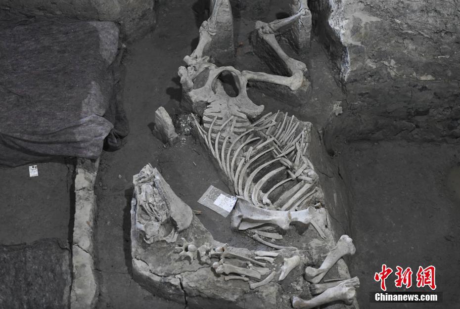 7月23日,绍兴稽中遗址中发现的越国时期的马的遗骸。近日,浙江绍兴稽中遗址考古工作取得阶段性重要成果。该遗址已清理大型建筑基址、水井、灰坑等重要遗迹40余处,是首次在绍兴古城内确认存在战国时期越国的大型建筑基址,相关遗存碳十四测年距今约2500年,实证了文献记载的勾践建都历史,是越国都城考古的重大发现。中新社记者 王刚 摄