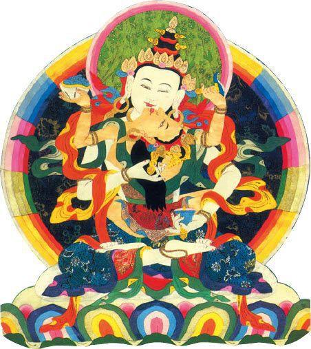 如何修行本尊守护神呢?实际上,观修本尊的方法有很多种。依据修行者的需要、愿力及修行次第不同,我们可以观想本尊在我们的头顶上;或者我们将身体的寻常感觉融入空性,让自己完全转化为本尊的形相;或者观想本尊在我们面前的虚空中。最普遍的方法是观想自己转化为本尊,以极大的信心来观想,全心融入本尊形相的各种细节中,这可扫除障碍,提高修持各种瑜伽的能力,而且被贪、嗔、痴、慢、疑五毒所污染的凡夫生命,从此可以转化为具有五智的开悟境界。