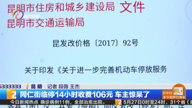 昆明国有资产管理有限公司停车管理部主管 梁珏:“路面停车制定的收费标准是2013年调整过一次,这个是经过听证会公示的。”