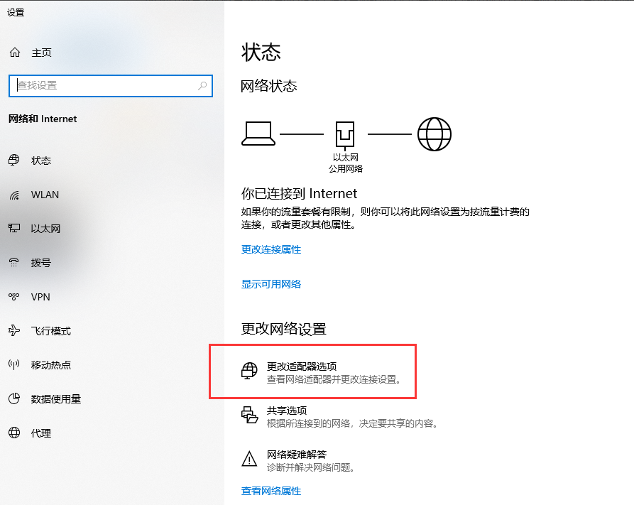 2.单击“更改适配器选项”。