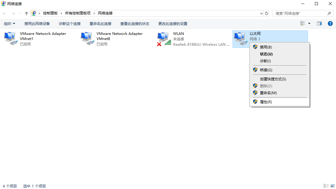 3.选择您要连接的网络,右键单击并选择“属性”。