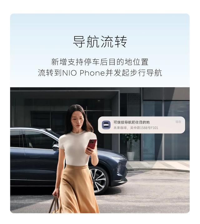 新增支持停车后目的地位置流转到 NIO Phone 并发起步行导航