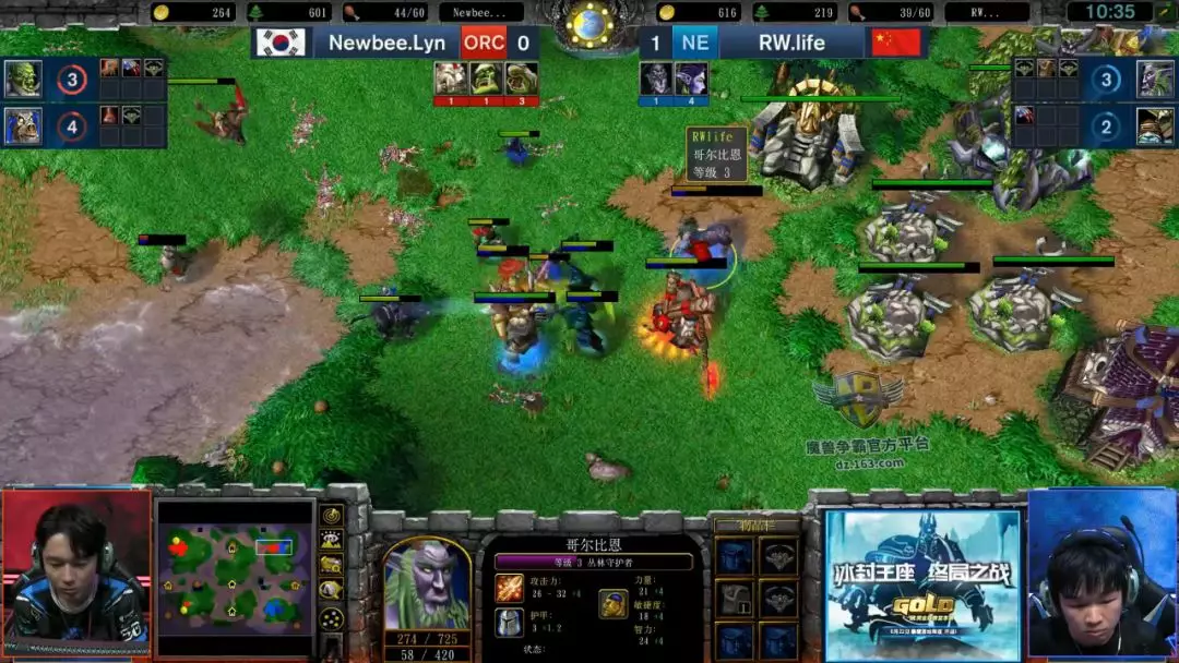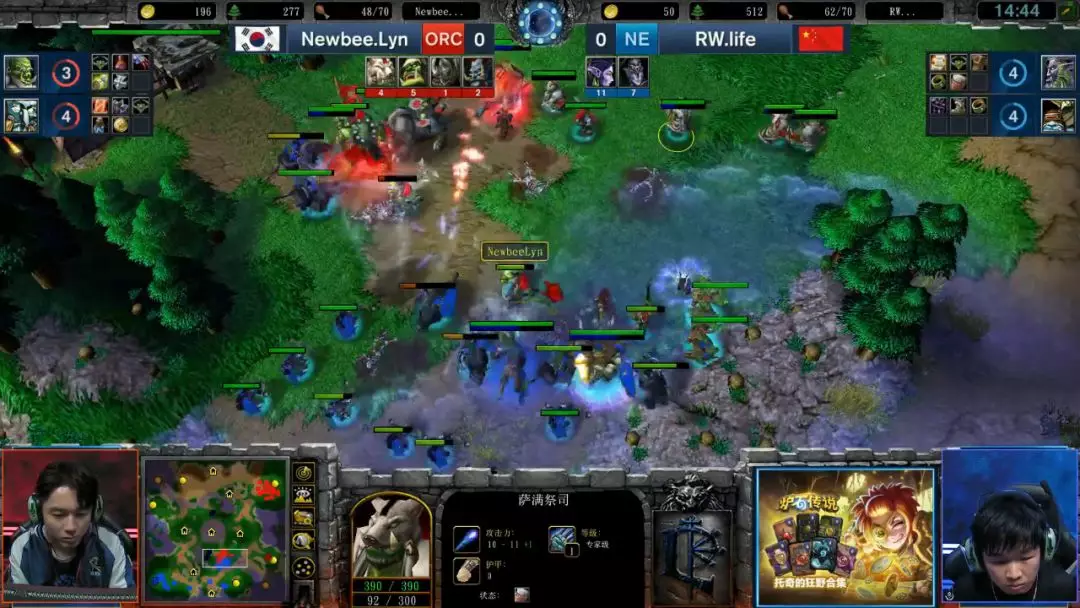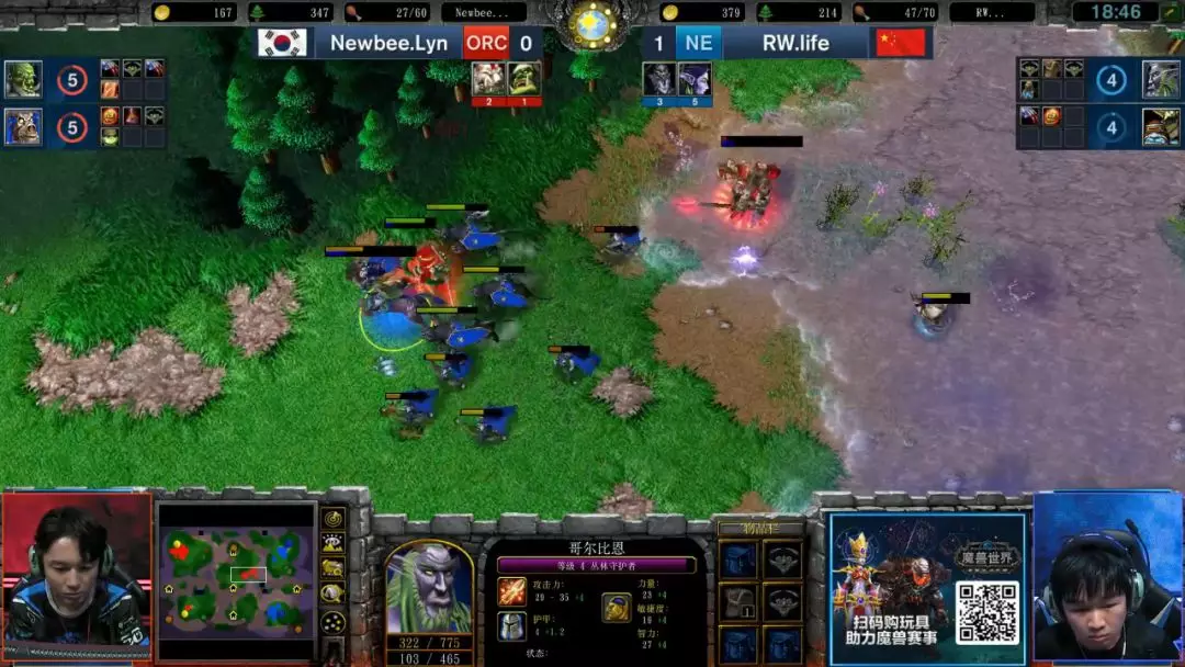 之前的比赛,Lyn素有“林宝强”的称号,魔兽发展到现在,宝物在很多时候能够左右战局的发展。风水轮流转,这一次轮到Life的宝物逆天。Life先是利用商店处掉落的吼叫挡住了Lyn三级小y的强力压制,接着又打到吹风棒和战鼓光环两个神器。吹风棒让剑圣长时间在天上飞翔,极大限制了兽人的输出;战鼓光环则为AC女猎增加了输出,各种飞箭如滂沱大雨落在兽人身上,一进一出之间,Lyn全面溃败。