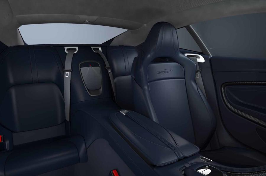 新的内饰特性包括前排座椅靠背上的协和标志,驾驶员遮阳板上的“ Mach Meter”(马赫米特)标志和带有“ Sonic boom”图形的Alcantara顶篷。该公司声称,还有钛桨移位器-由协和飞机的压缩机叶片制成-特殊的地板垫和独特的门槛板。