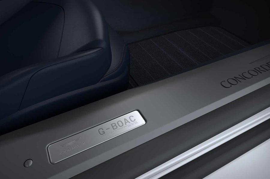也有整洁的细节,包括用实心铝制成的新侧翼,英国航空的前机翼上镀铬的“ Speedmarque”徽标,黑色的“ Q by Aston Martin”机翼徽章,甚至旗舰店的真实飞机识别号在门后的车身上的协和飞机(G-BOAC)检查板由阿斯顿首席执行官安迪·帕尔默(Andy Palmer)和英国航空董事长亚历克斯·克鲁兹(Alex Cruz)签署。